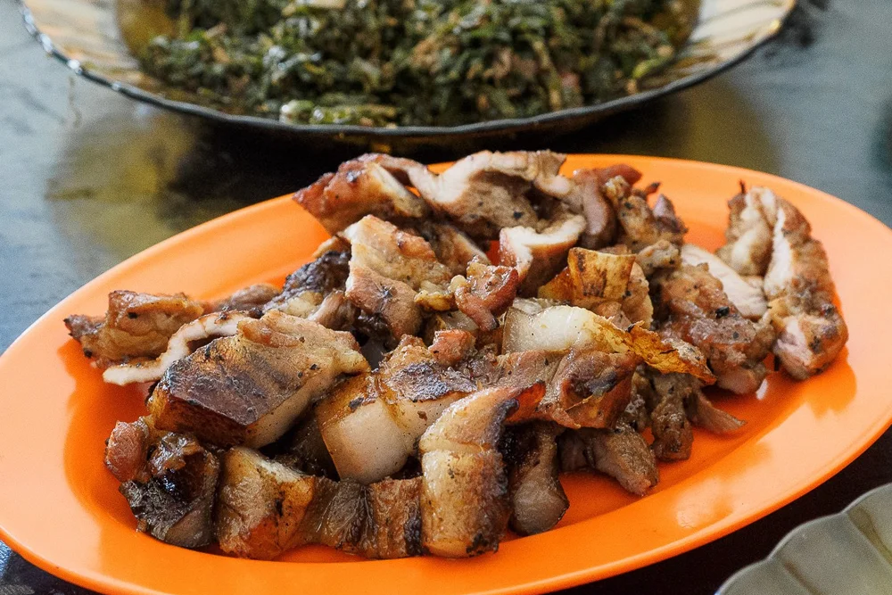 - Saksang B2 (Babi cincang yang dimasak dengan bumbu dan darah)