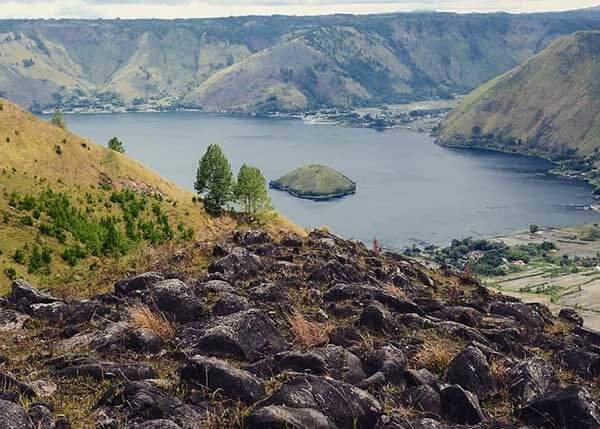 - Menikmati pemandangan Danau Toba yang indah dari atas batu.