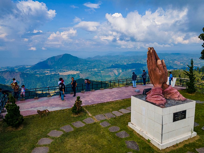 Morfologi Dataran Tinggi dan Kaldera Rim Endapan Tufa Hasil Letusan 74.000 Tahun yang Lalu. Lanscape/bentang alam tempat memandang kaldera rim yag indah dan dapat melihat pulau sibandang dan samosir dan dinding kaldera pada sisi yang lain. Breksi volkanik bersusunan andesitan yang tersingkap di kawasan Tapian Nauli (Muara-Silangit), merupakan batuan volkanik pra-kaldera yang sangat jarang tersingkap. Latar belakang adalah panorama Danau Toba dari arah selatan.